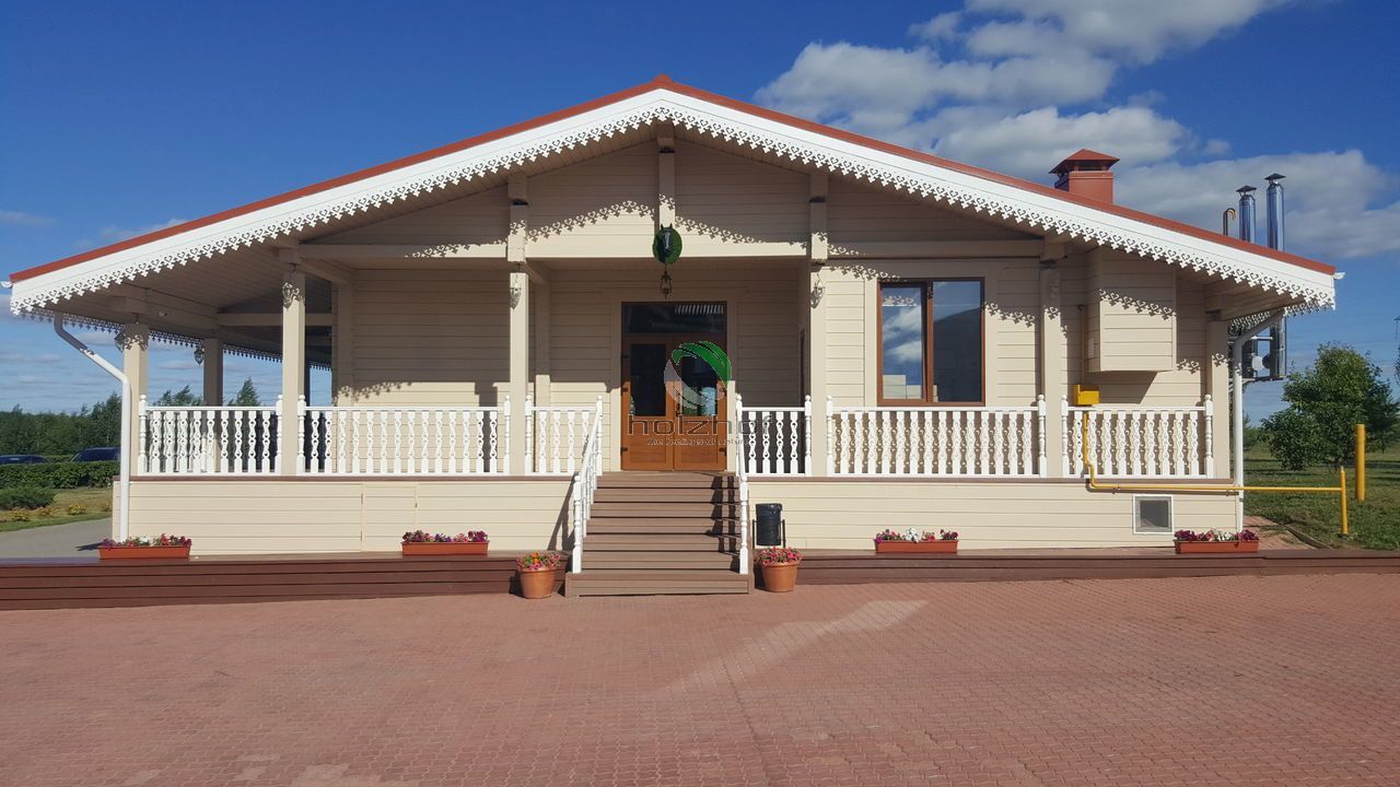 На агроусадьбе смонтирована террасная доска Holzhof с тиснением, которая отлично вписалась в общий интерьер, террасная доска будет долго и надежно служить и радовать посетителей, своим внешним видом и превосходным качеством.